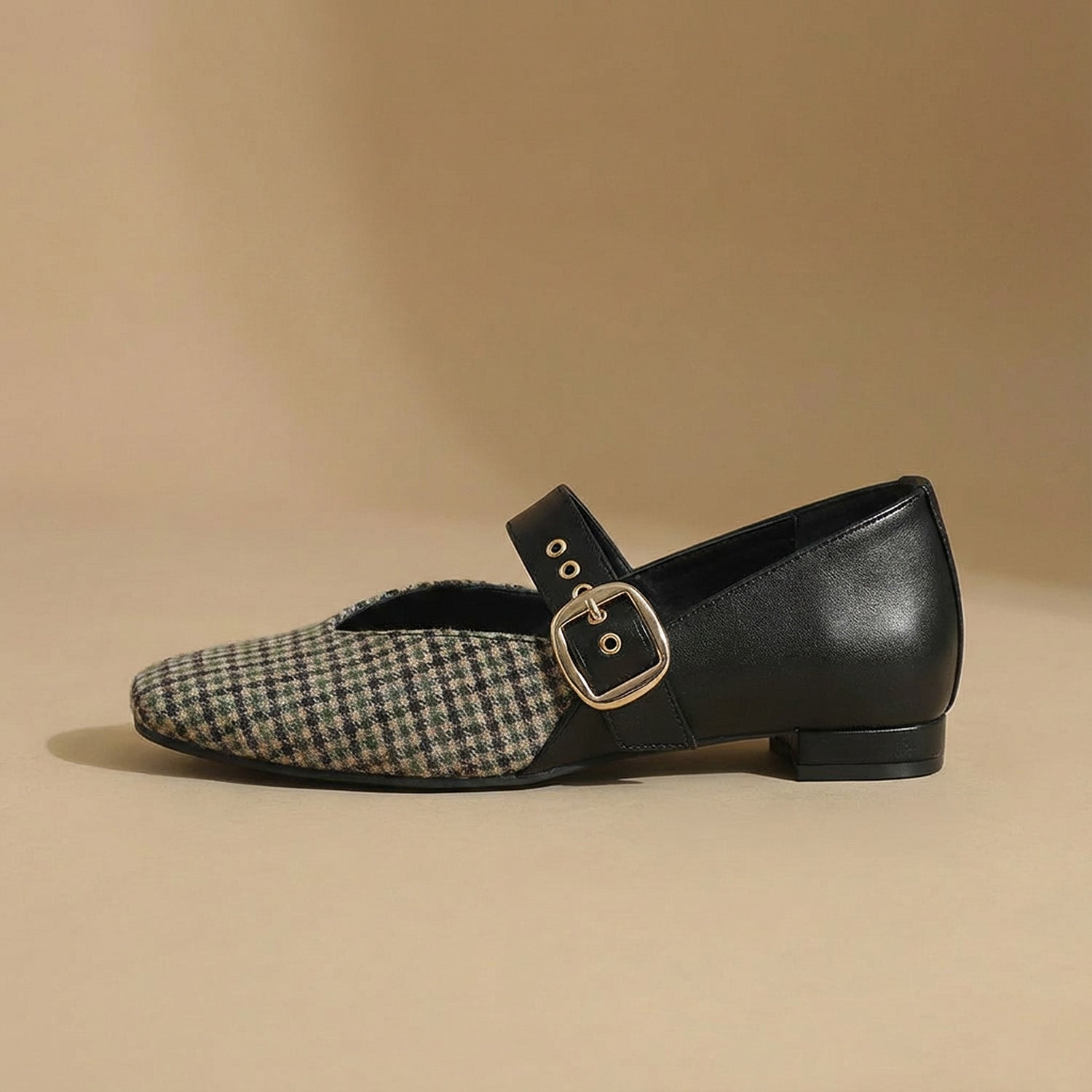 Houndstooth Mary Jane Flats – Minimalist Design, Timeless Appeal