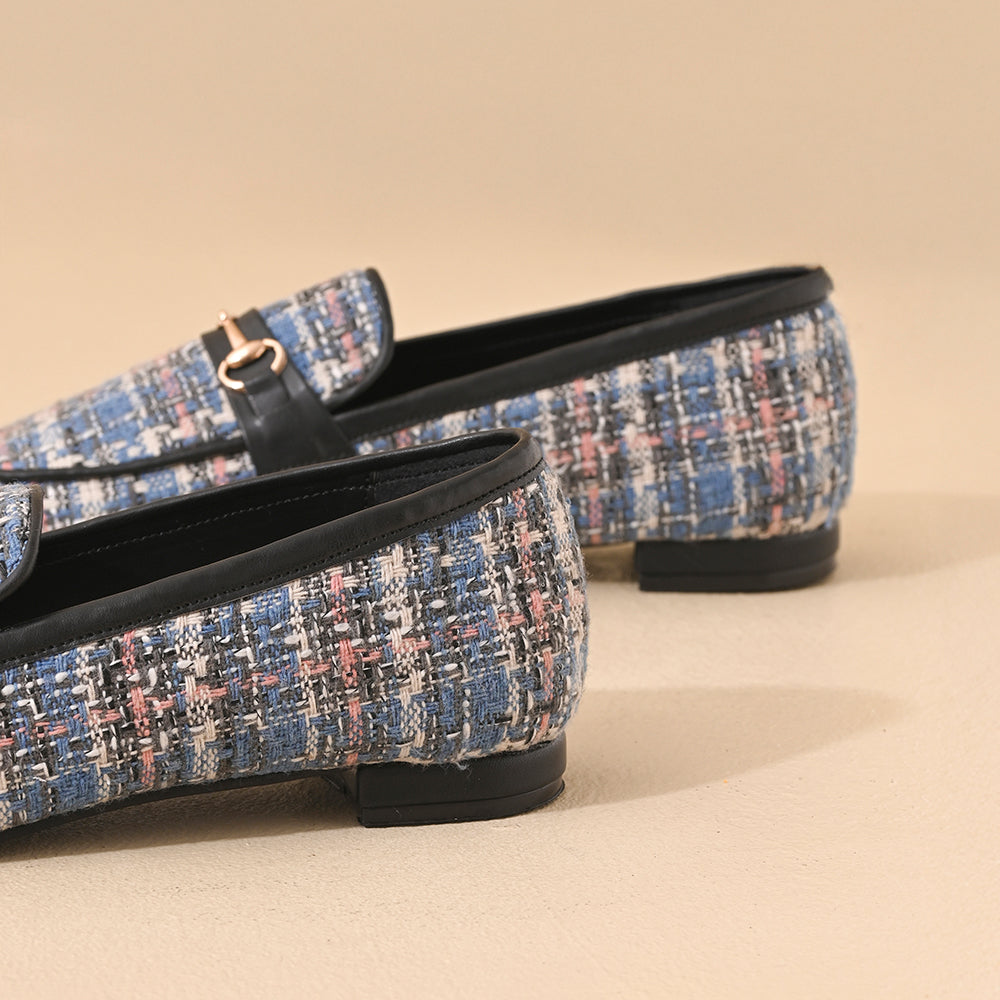 Textured Tweed Block Heel Loafers – Timeless Texture Meets Modern Elegance