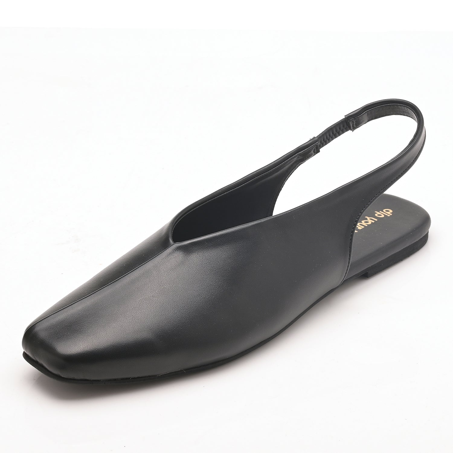 Dip your toes into refined simplicity with these black slingback sandals, a perfect blend of structure and ease. Featuring a modern T-strap design, closed-toe front, and subtle stitch detailing,The slingback strap adds a secure fit, while the cushioned sole ensures all-day wearability—making them your go-to for both workdays and weekends.
