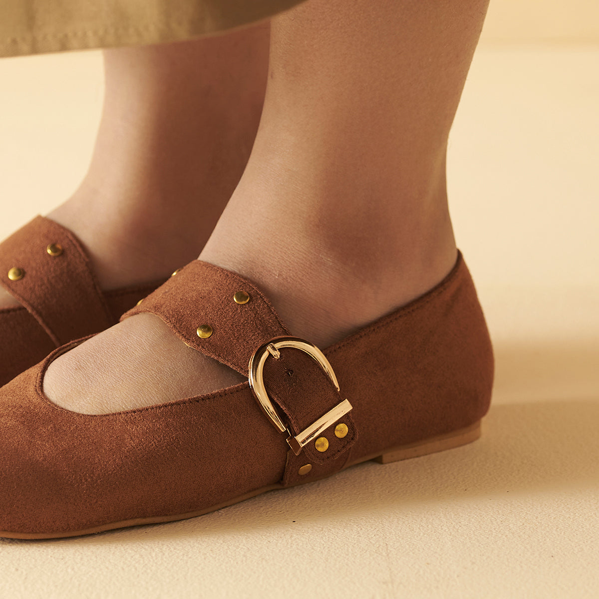- Refined Craftsmanship – Made with soft suede finish, these suede Mary Janes feature a refined gold buckle strap and subtle stud detailing that add just the right touch of luxury.