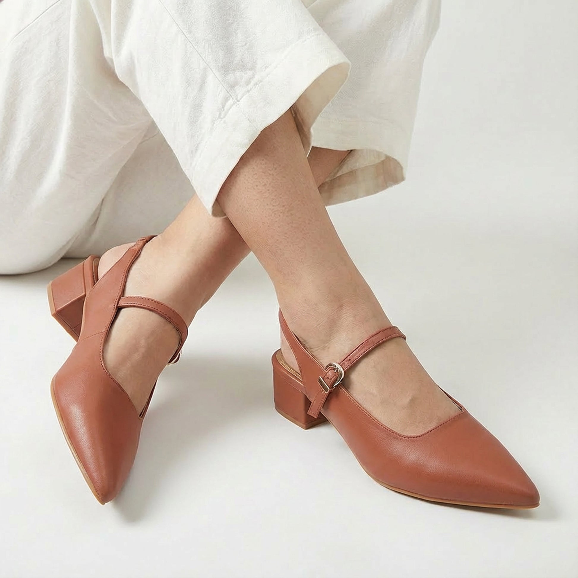 These Tan Slingback Pointed Flats offer both—stable heel, secure fit, and a polished finish that lasts all day. Featuring a classic pointed toe and a sturdy 1.5-inch block heel, these heels offer the perfect balance of poise and comfort for all-day wear.
